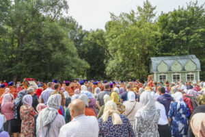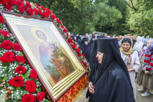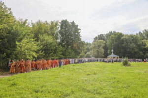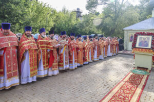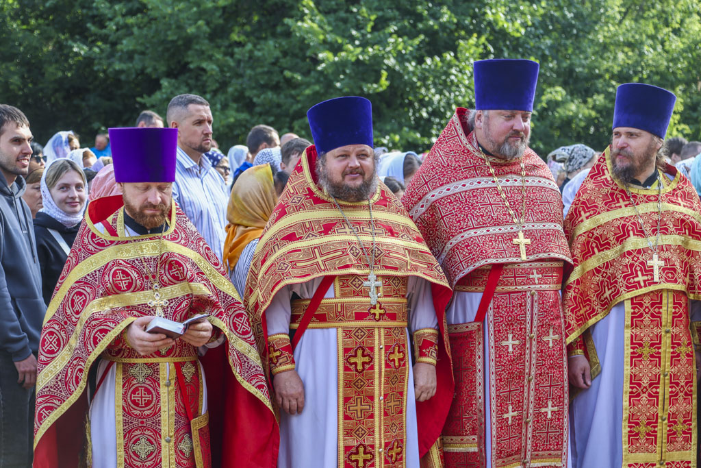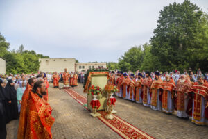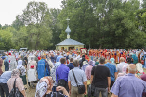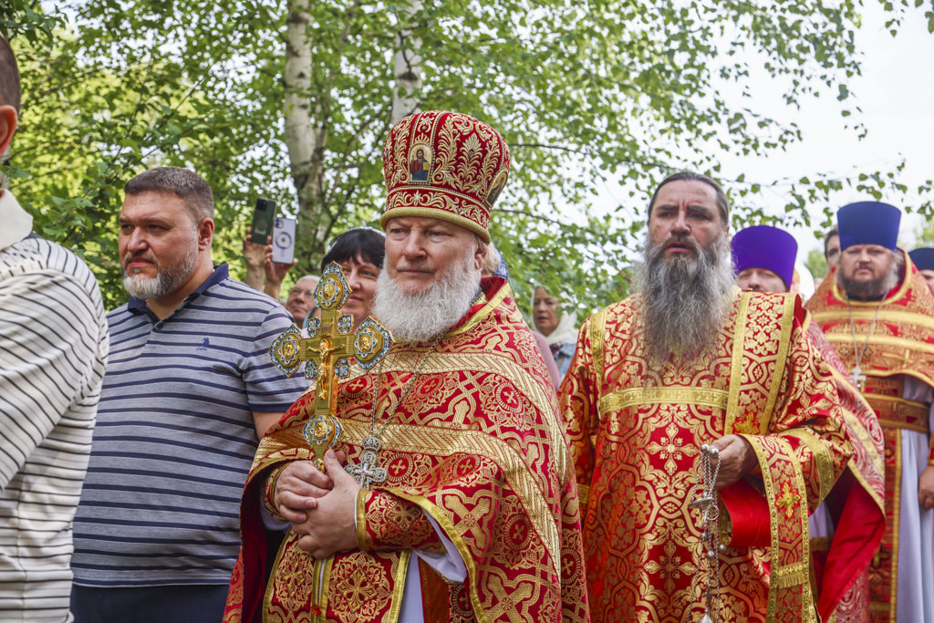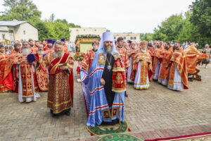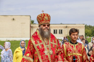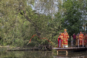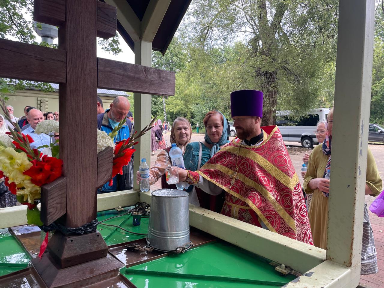 По окончании Литургии был совершен праздничный молебен с крестным ходом на монастырское озеро, где митрополит Феодосий освятил воду.